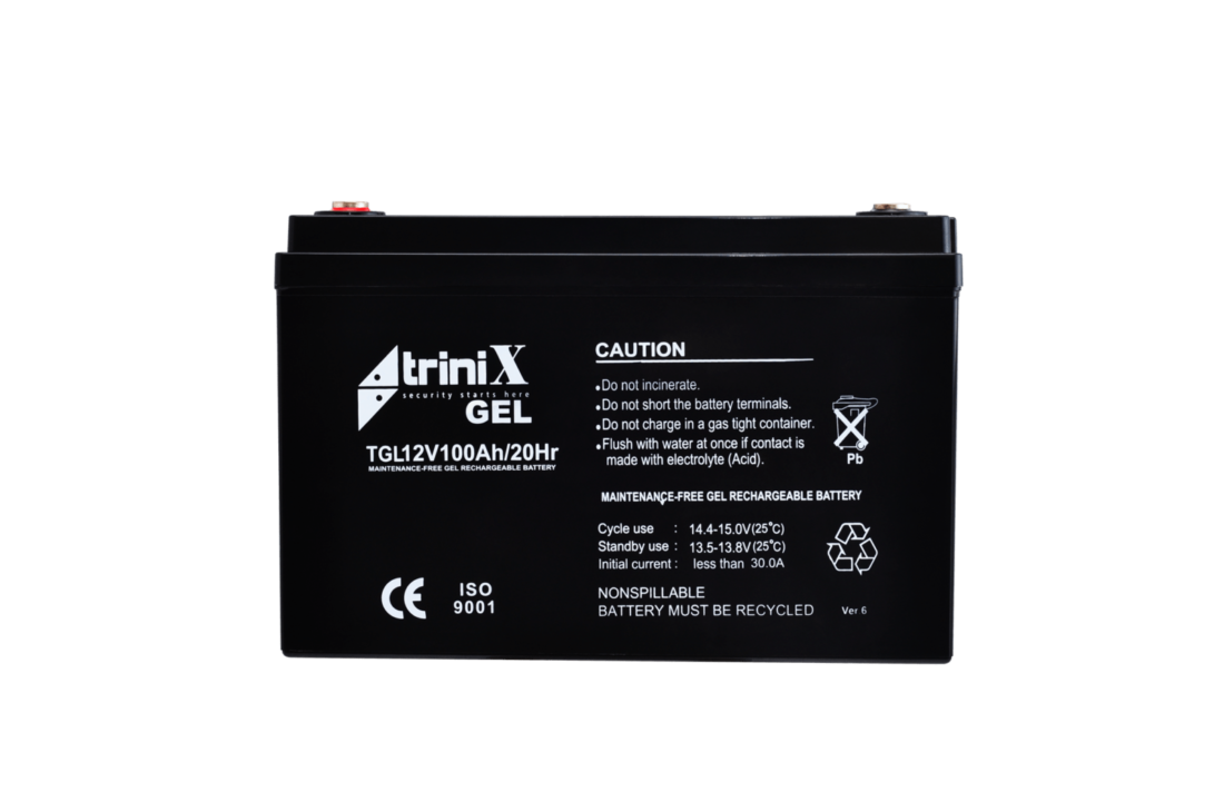 АКБ 100Ач, 12 В GEL от TRINIX – это гелевый аккумулятор. Аккумуляторные батареи с технологией производства GEL обладают целым рядом преимуществ: более длительный срок эксплуатации (до 10 лет); большее количество циклов разряда; работа в условиях более глубокого разряда батареи; незначительная потеря емкости в нерабочем состоянии; лучшая работа при низких температурах.