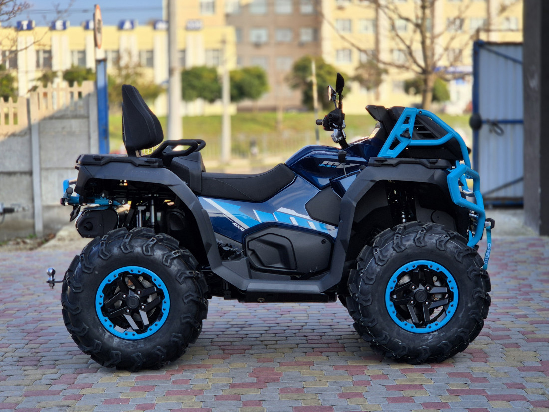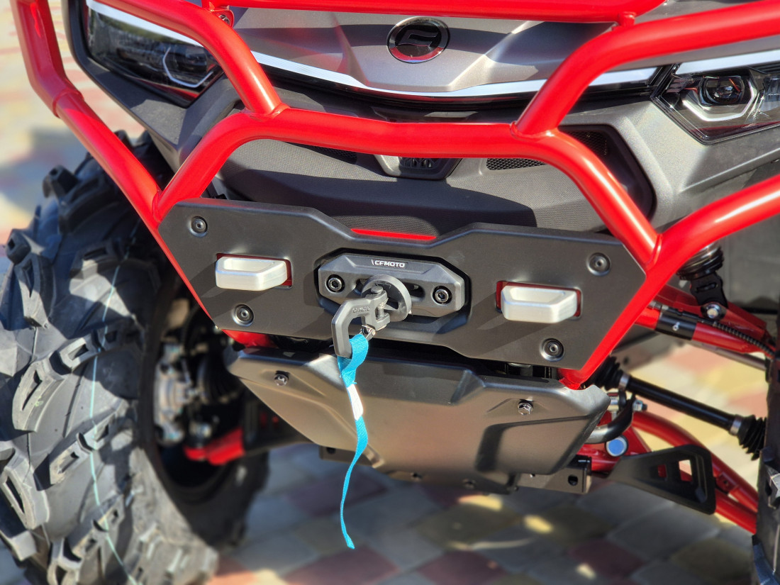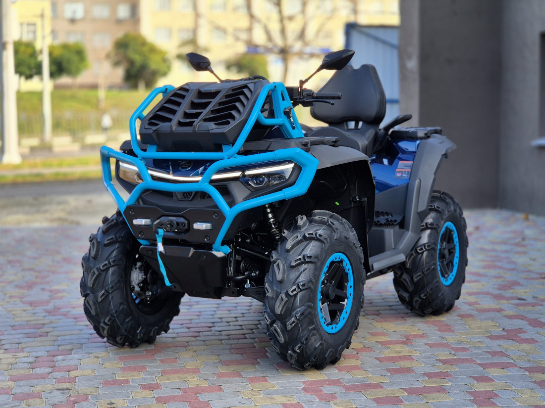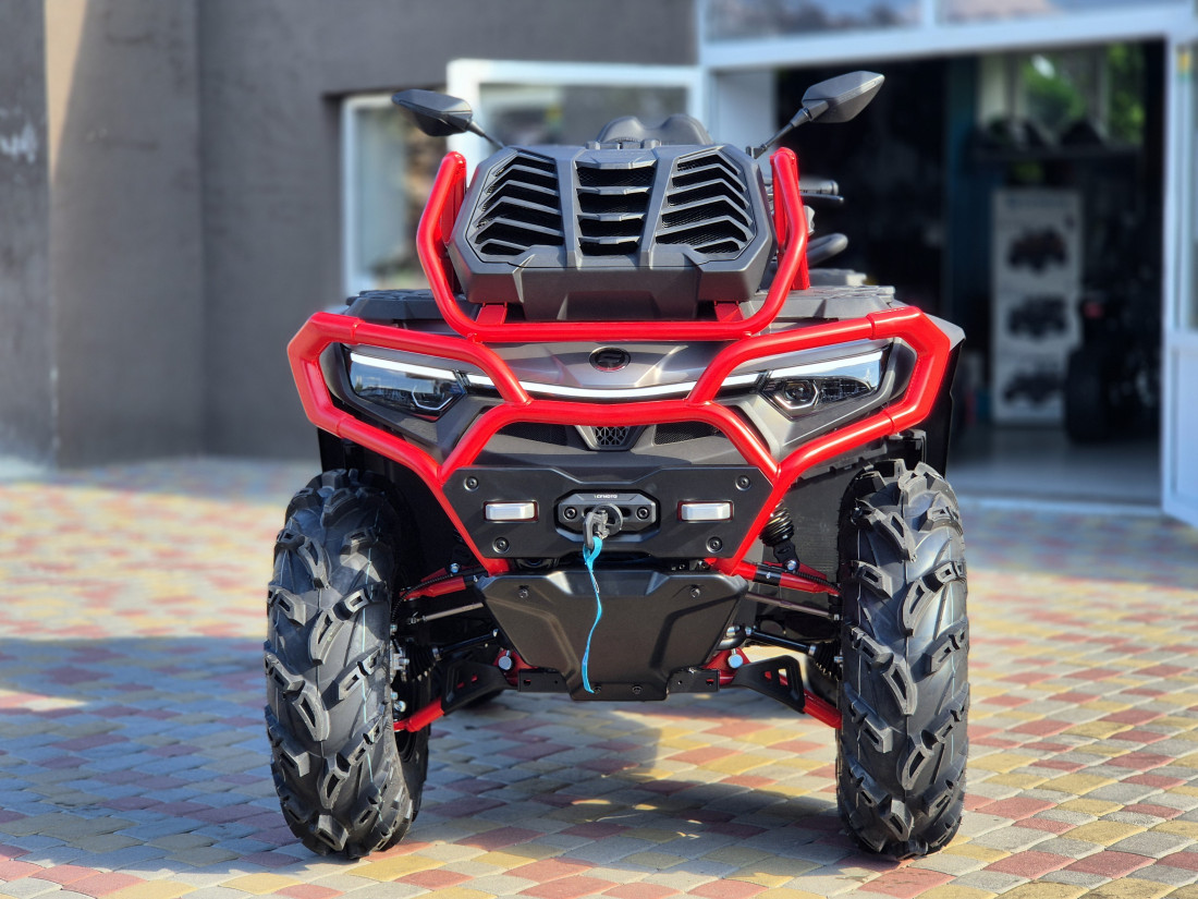 Модель оснащена грязьовими ременями і діагональними підніжками для кращого зчеплення і зручності під час руху. Катеринка (лебідка) вищого розташування допоможе швидко вибратися з багна. Низ квадроцикла міцно захищений поліетиленовим кожухом високої щільності.