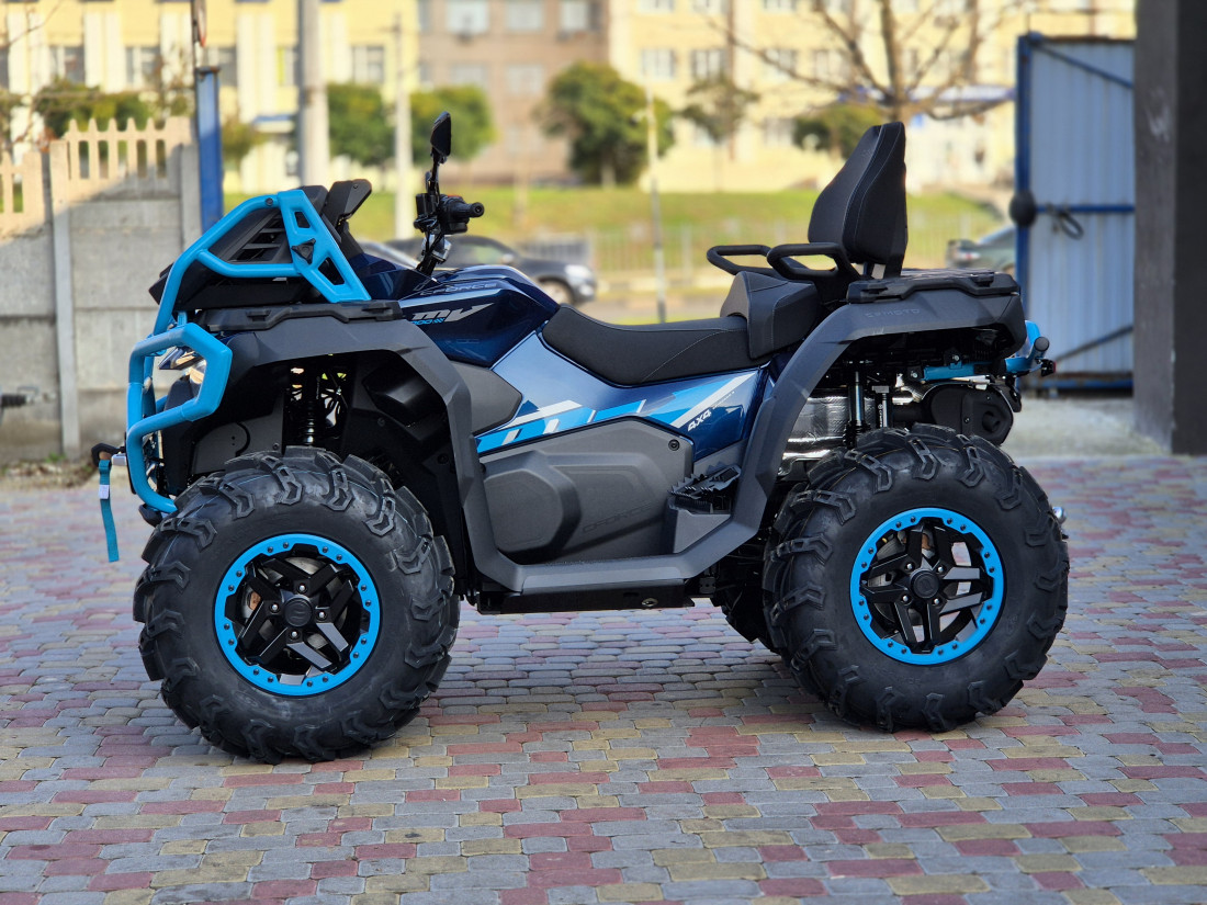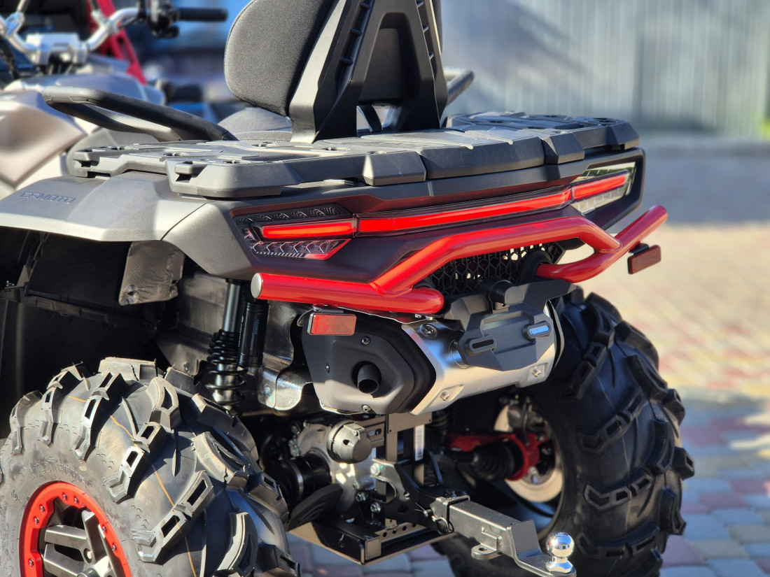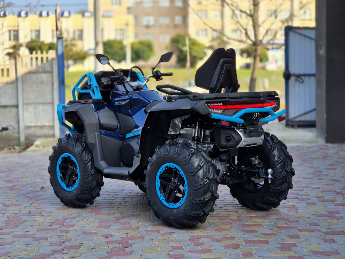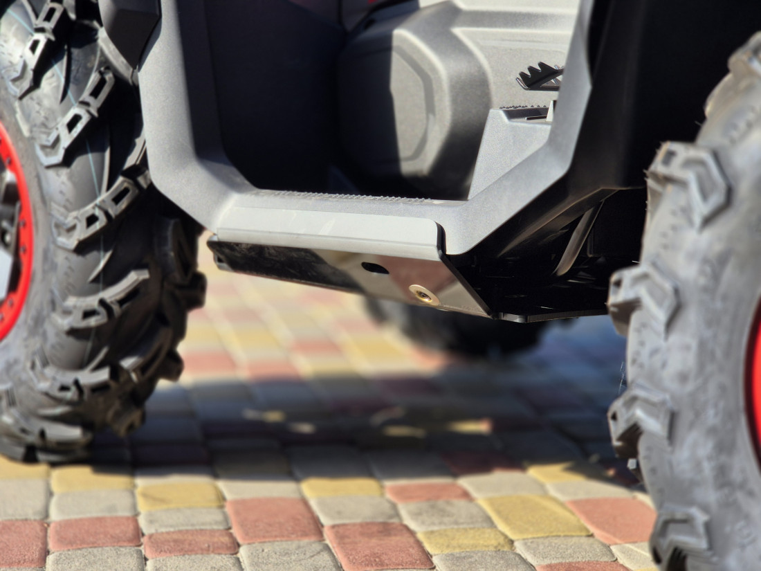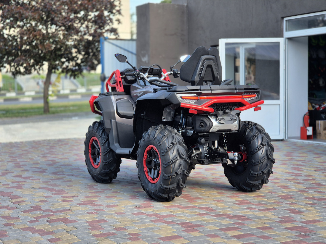 Модель оснащена грязьовими ременями і діагональними підніжками для кращого зчеплення і зручності під час руху. Катеринка (лебідка) вищого розташування допоможе швидко вибратися з багна. Низ квадроцикла міцно захищений поліетиленовим кожухом високої щільності.