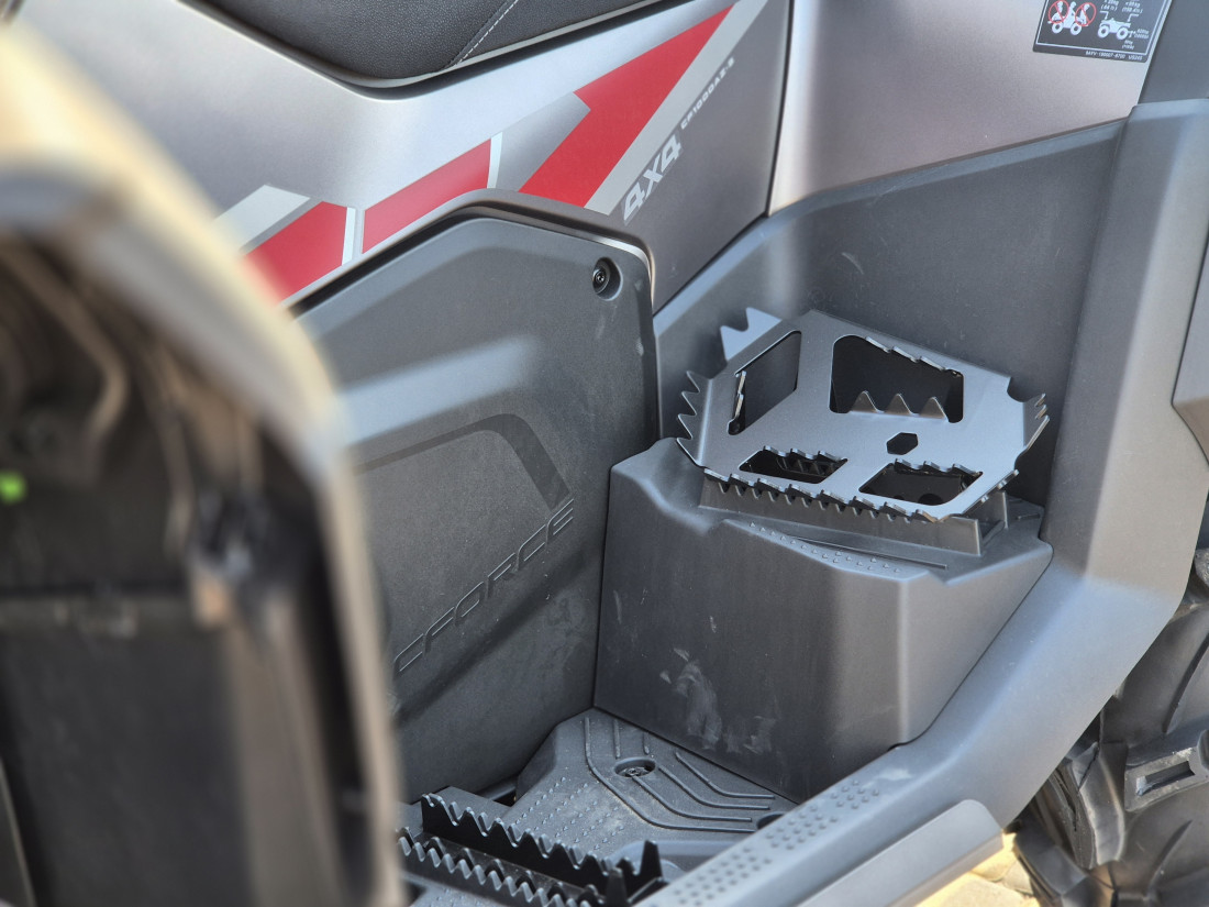 CFORCE 1000 MV має 30-дюймові шини, які самоочищаються від грязі і мають чудове зчеплення (входять у стандартну комплектацію моделей CST Sludge Hammer і CST Wild Thang). Завдяки збільшеному до 334 мм кліренсу і ширшій колії цей квадроцикл легко пересувається по складній місцевості.