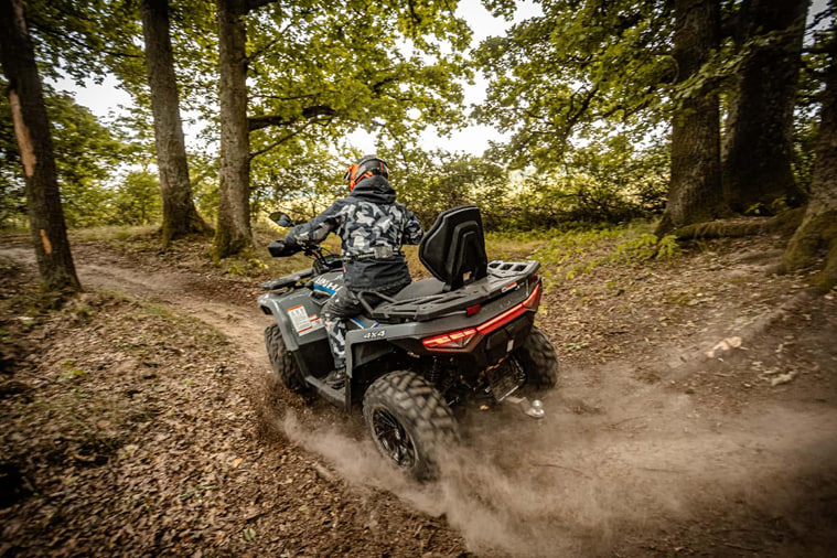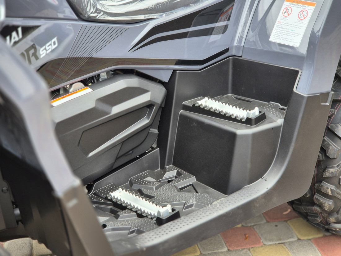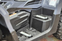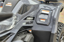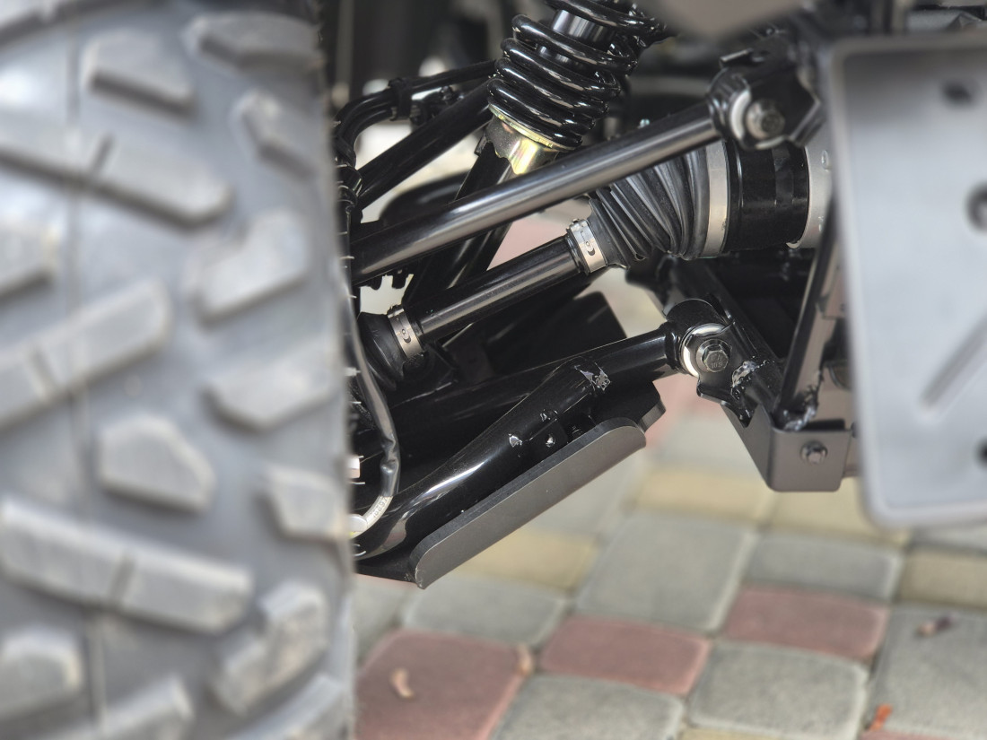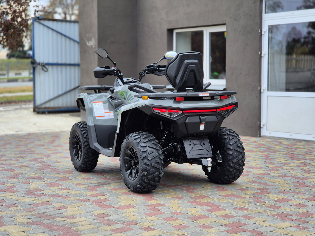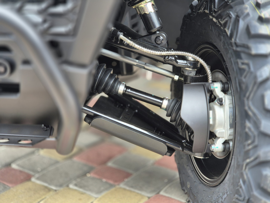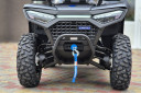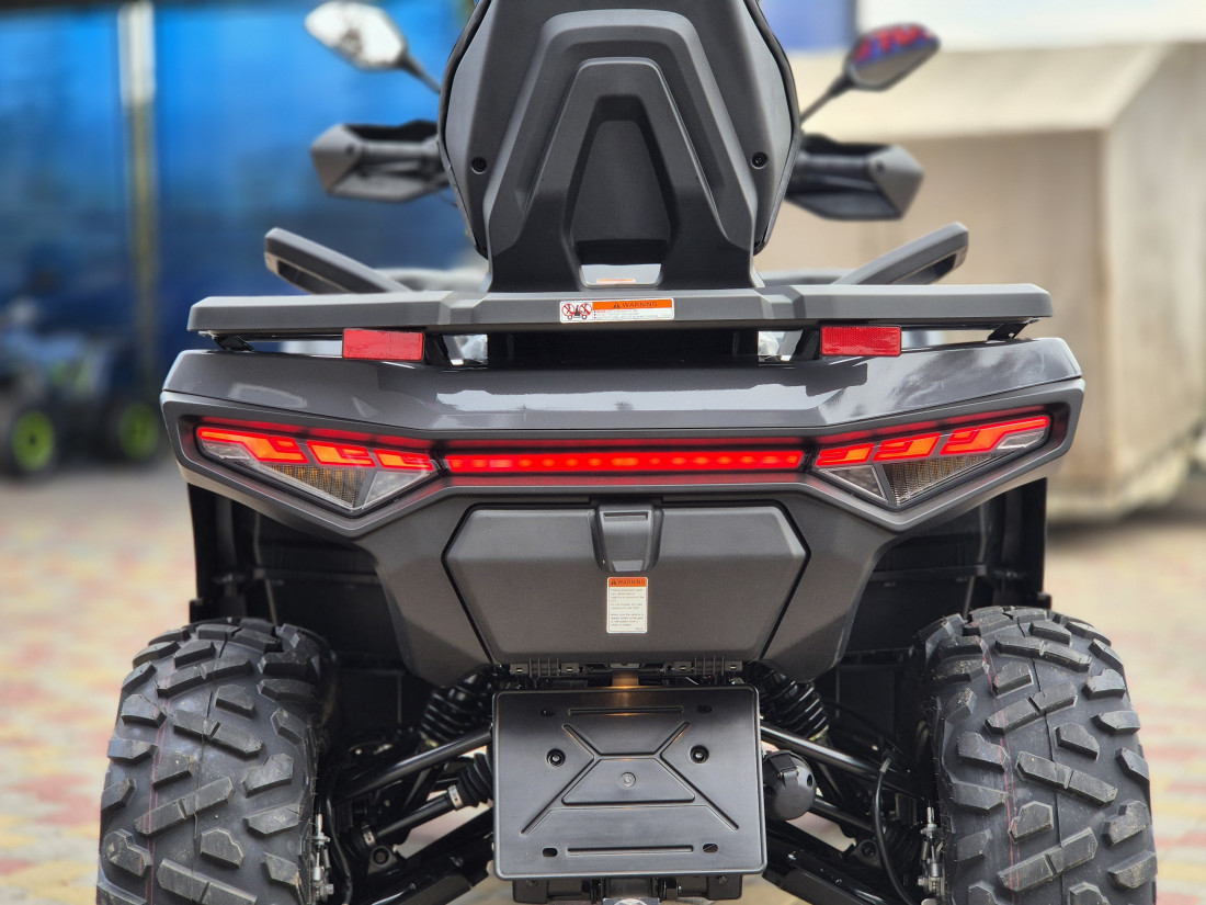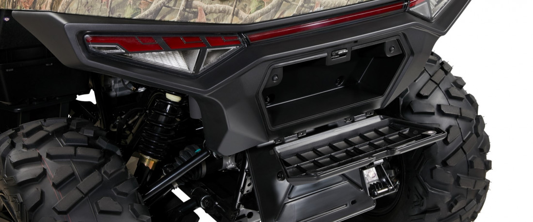Електропідсилювач керма (EPS), п’ятирівневий підігрів керма і курка газу , режими роботи 2WD / 4WD з можливістю примусового блокування диференціала, захист для рук, 6 мм пластиковий захист днища і важелів, кевларова лебідка 2500lbs, литі диски 12″, шини 25″, фаркоп з роз’ємом для трейлера, задня спинка, багатофункціональна приладова панель LCD (5″), LED-оптика передній бампер, передня і задня багажні площадки, незалежна підвіска на подвійних А-подібних важелях, упори для ніг з алюмінію